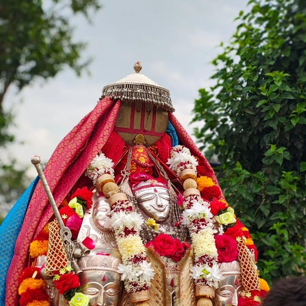The sacred fire is kept burning in the temple at all times. All persons anxious to communicate with the god, do so through the pujari who keeps long hair. The pujari worships the god and beats himself with an iron club. This being finished the god enters his body and replies to all questions through him.